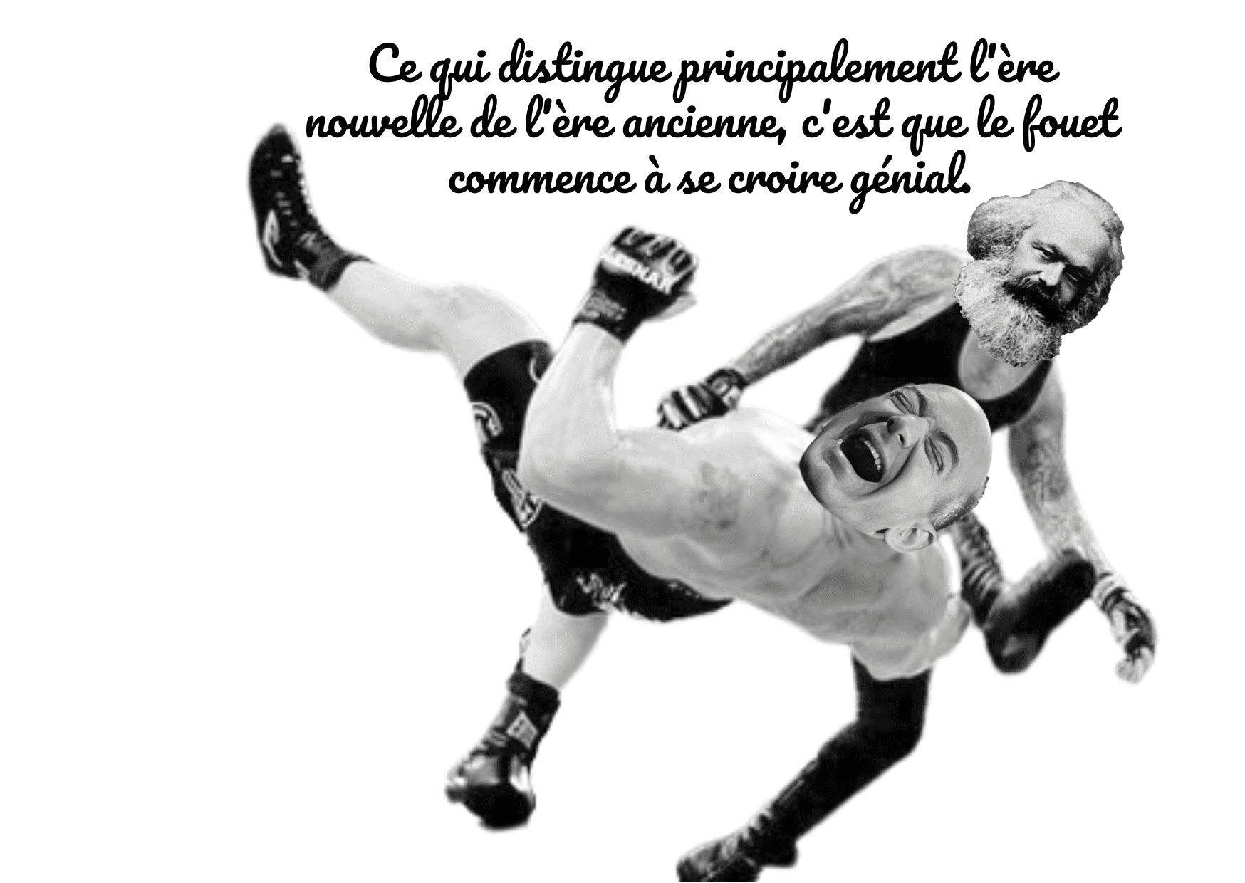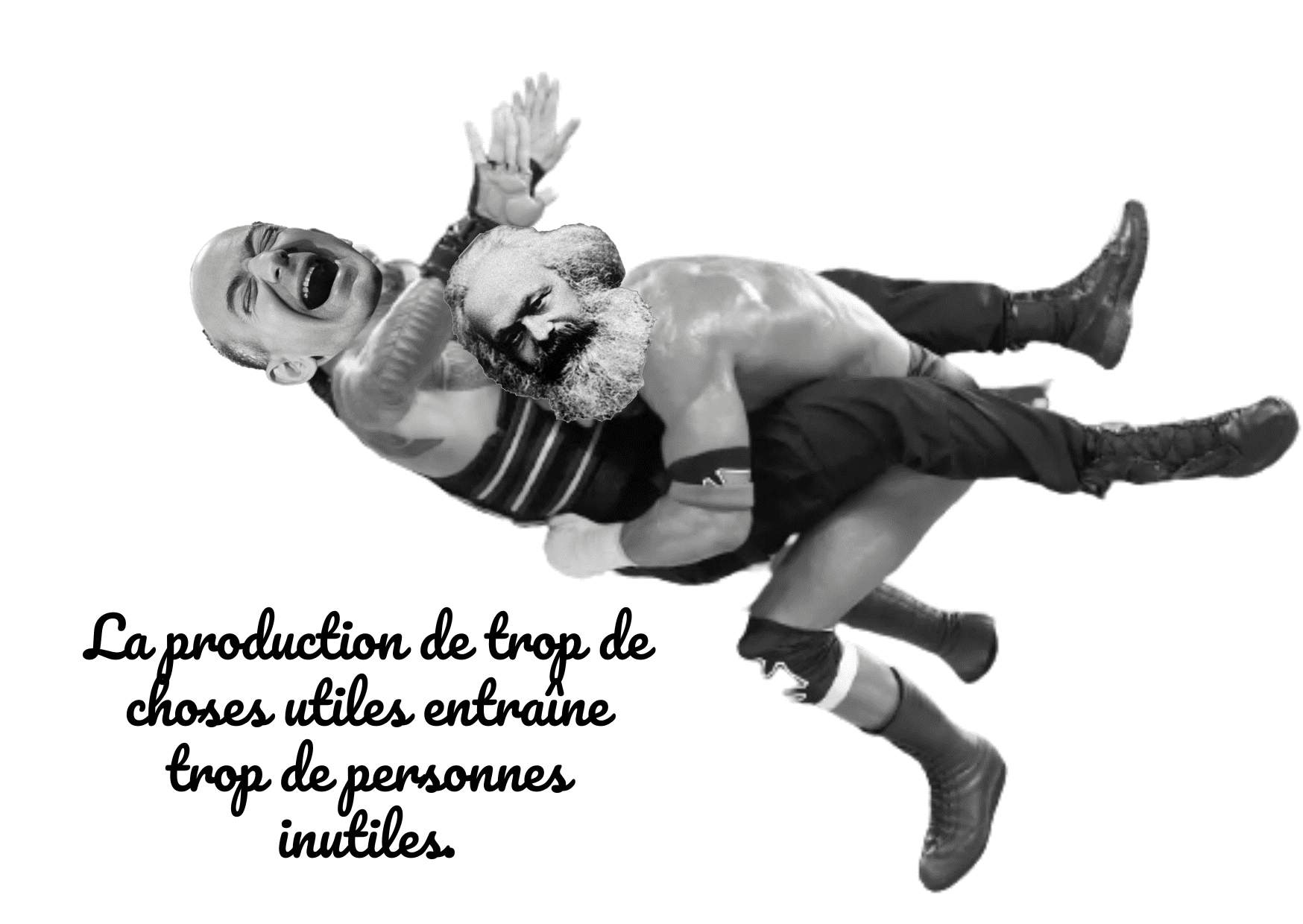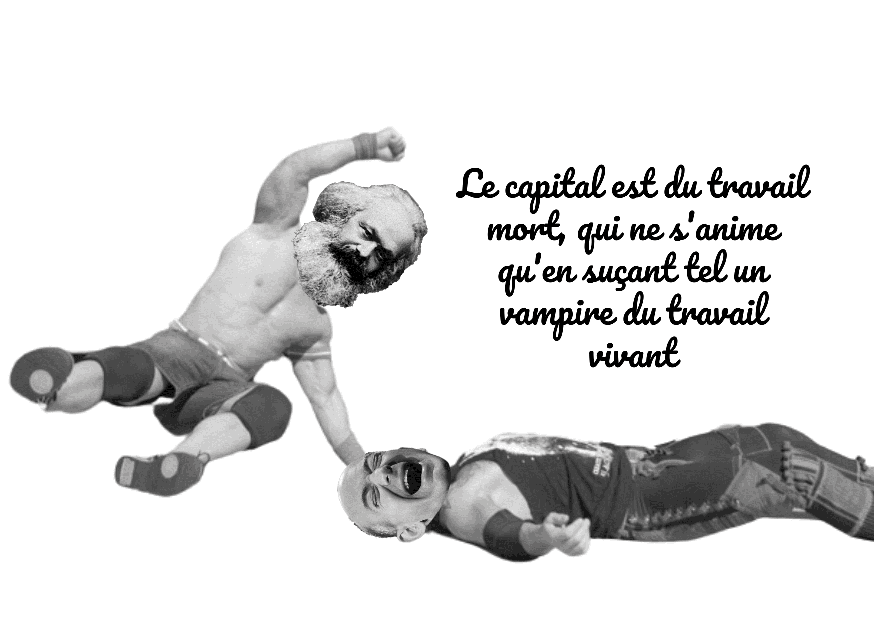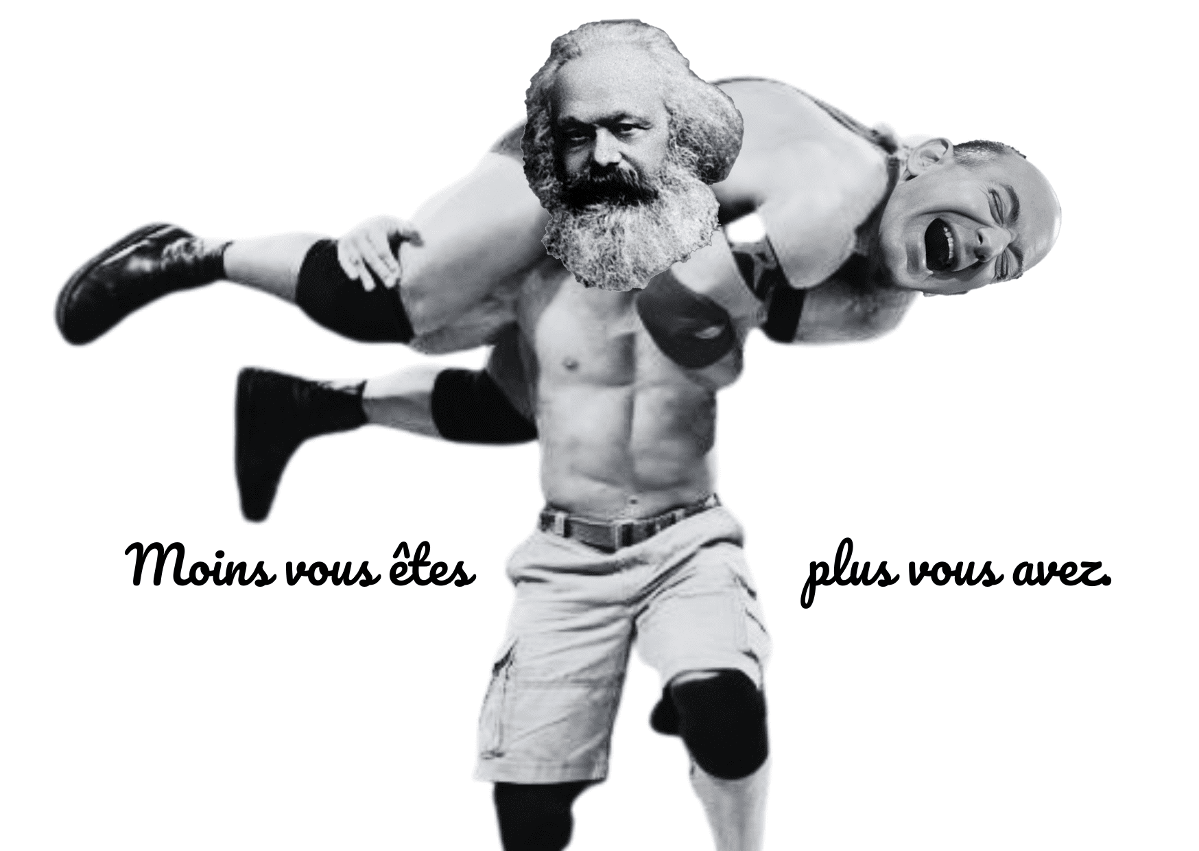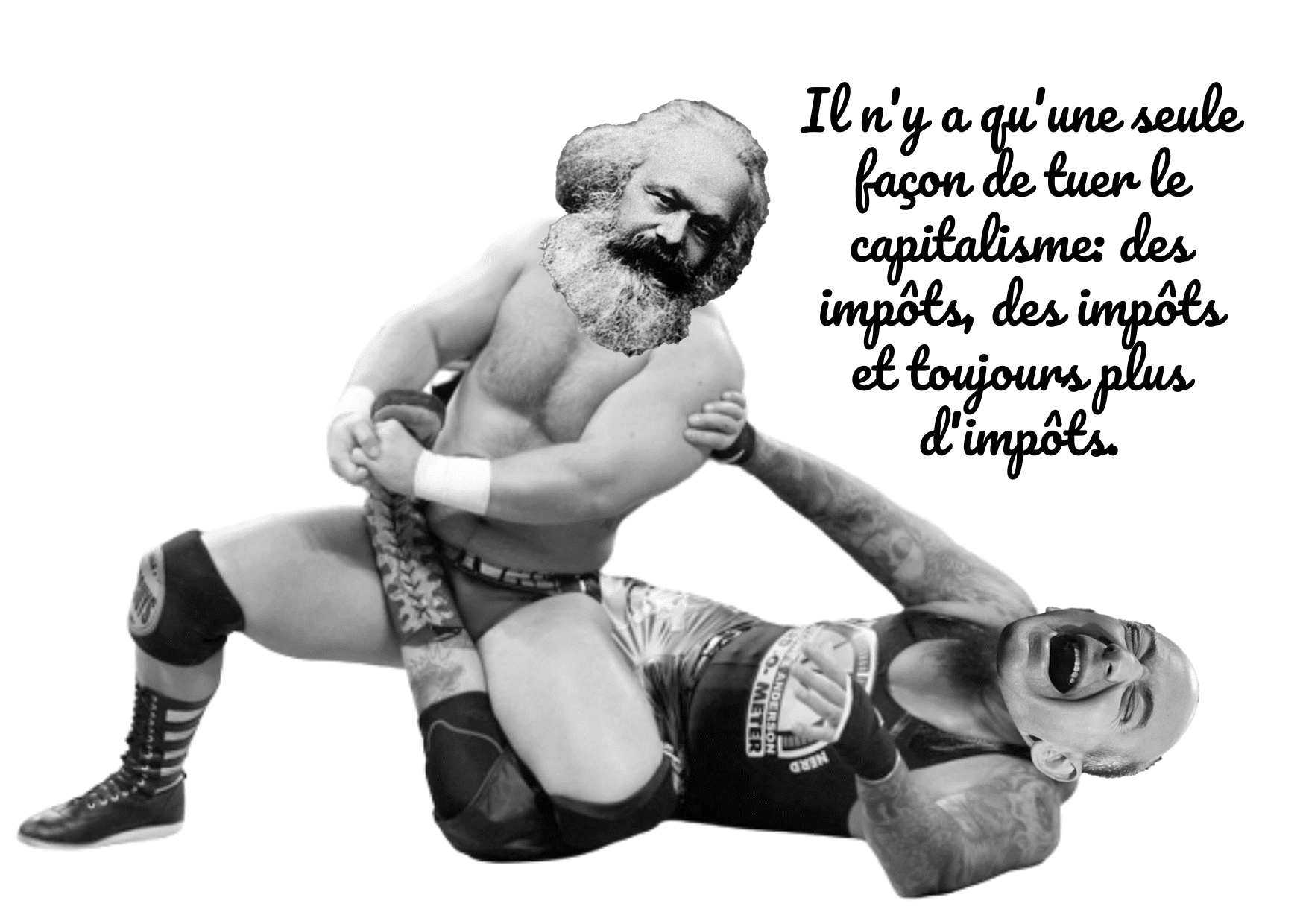 Le grand show de Big Marx qui casse des gueules de Jeff Bezos à la pelle. Décorez votre frigo avec de l’anticapitalisme primaire, travaillez au dé-néo-libéralisme de votre mur de chiotte. A chaque prise de catch sa petite citation du « top 10 des citations de Marx » en Pacifico, la font des gâteaux à la crème. Peace and matérialisme.