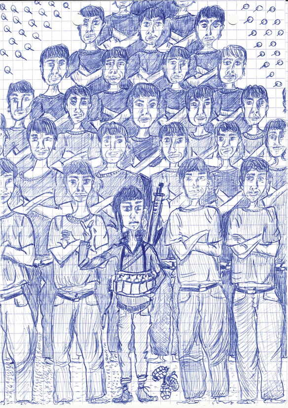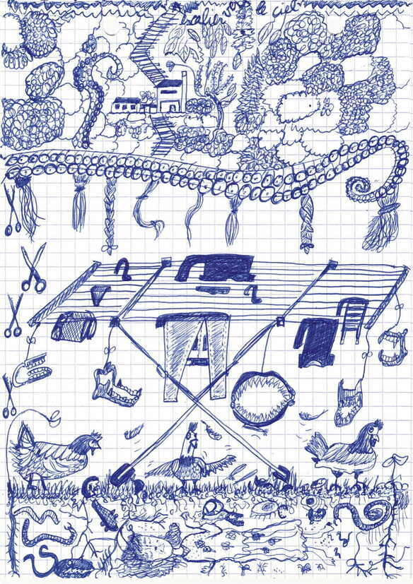 Dessins qui vissent dessins qui dévissent dessins qui déboulonnent dessins au bic bleu mais aussi au bic vert dessins pas à la plume pas de plume ici seulement des dessins déplumés des dessins qui volent pas des dessins qui rongent la terre qui se font du mouron des dessins qui font leur poids des dessins qui pèsent.
